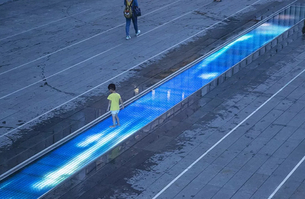 水本無形,它的物理特性讓它能輕易地跟隨容器而呈現不同的面貌。獨特的延展性使得水能呈現無以計數的不同效果。燈光的布置,介質的紋理,顏色和動態都能給水帶來無窮的變化